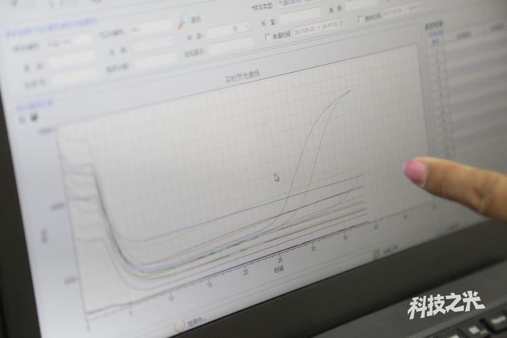 通过电脑屏幕可以实时监测实验反应过程。邢教授说,传统病原菌检测,光菌株培养就得耗费很长时间,且有些菌株非常难培养成功,而微流控芯片技术让这些问题都迎刃而解,使整个过程缩减至短短几个小时,这对老人、儿童等特殊呼吸重症患者而言意义尤其重大。